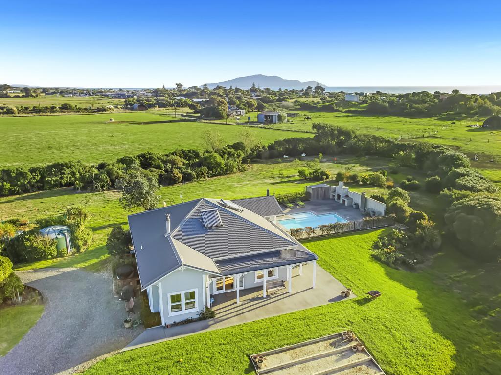 Positioned for all-day sun and privacy within 1.3910HA of landscaped gardens, the property attracts native birds and wildlife. Enjoy stunning views of the Tararua Ranges and sunsets over unspoilt Te Horo Beach, just a short walk away.