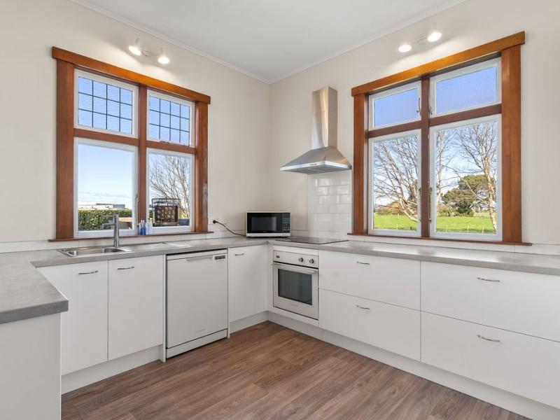 The heart of the home is the new kitchen, which flows effortlessly into the dining area and out to a sun-drenched northeast-facing deck. A wood burner on wetback keeps things cozy year-round.