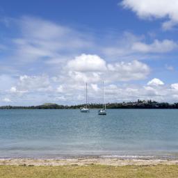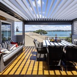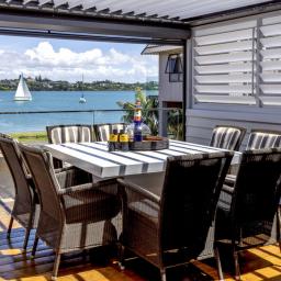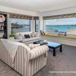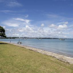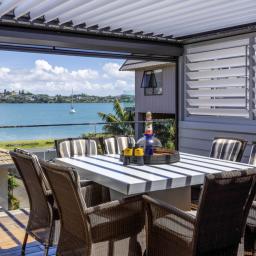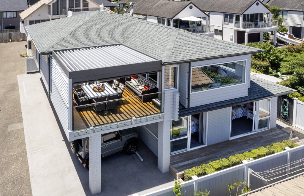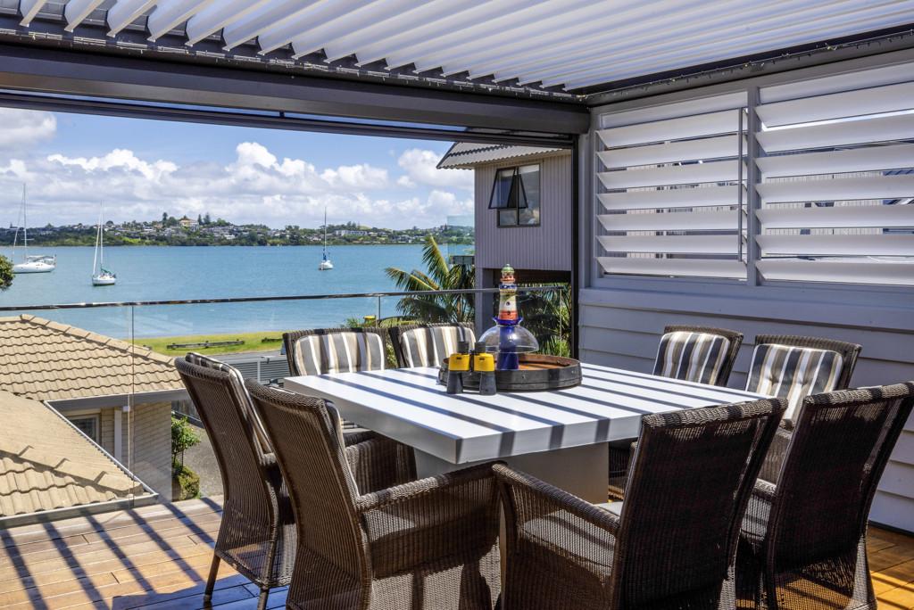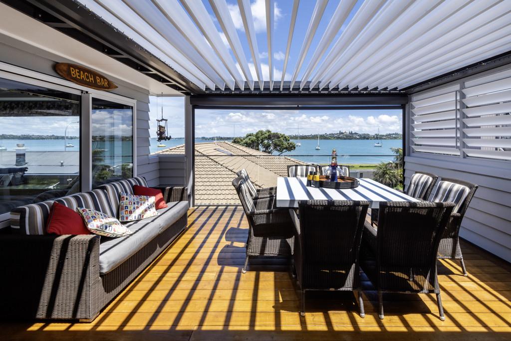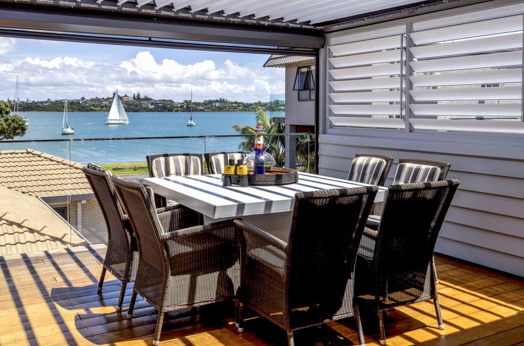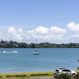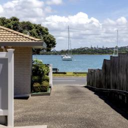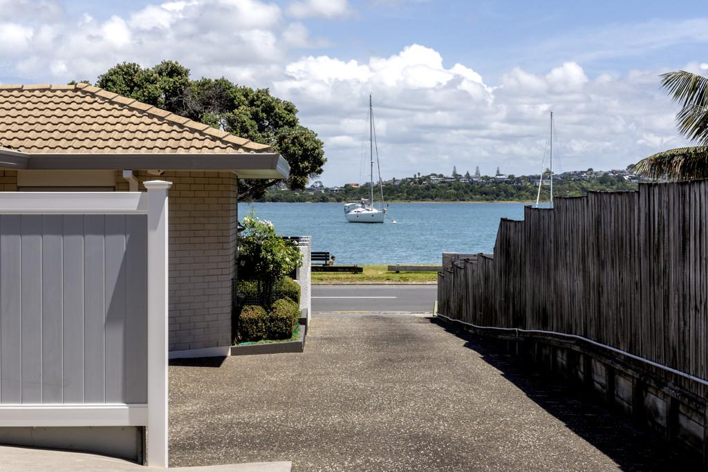 Elevated and overlooking the beach and Tamaki River all the while being mere metres to the grassy reserve and sandy beach immediately in front.