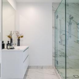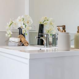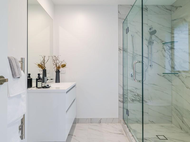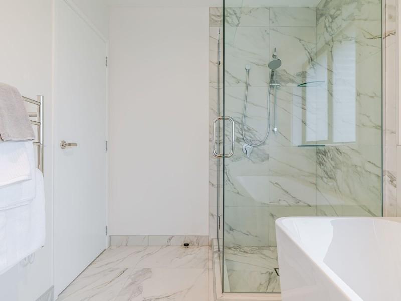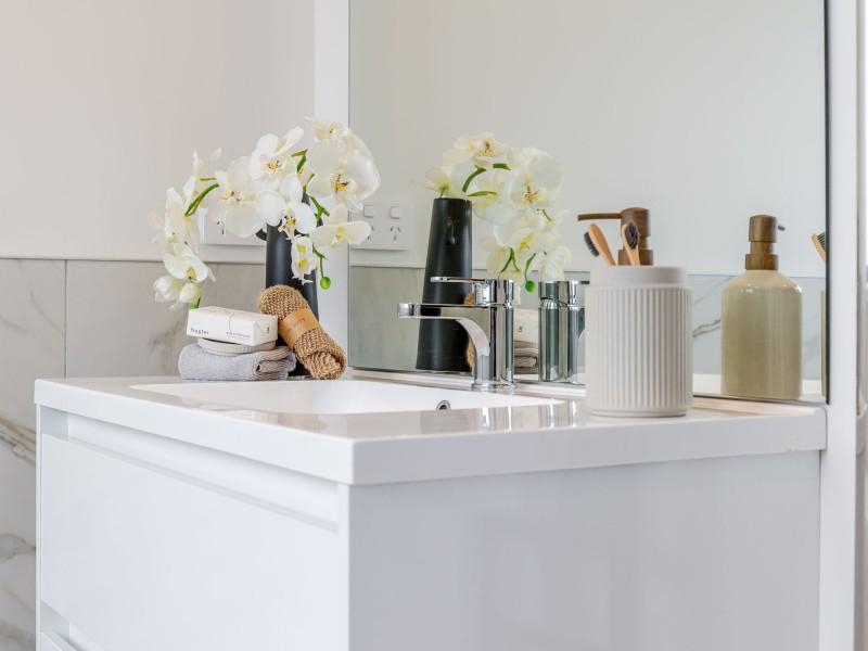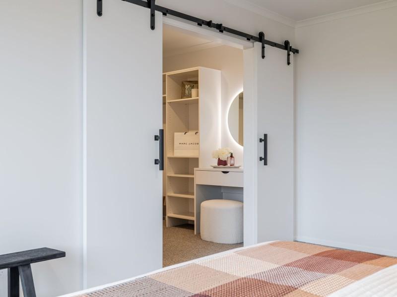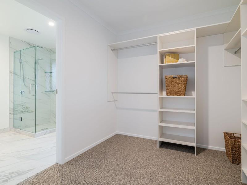Both tiled bathrooms have a touch of luxury and the master wardrobe is set up with its own make-up nook, adding a sense of style.