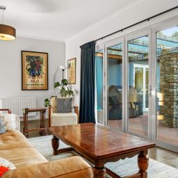 Comfort is ensured with full double glazing, diesel-fired radiator heating, underfloor heating, and a gas fire for added ambience.