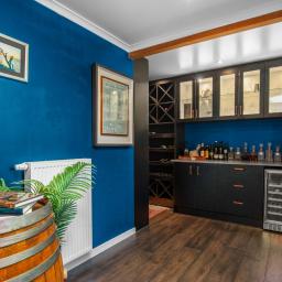 A sophisticated, moody wine cellar adds a touch of luxury, designed for fine wine tasting and food pairings, it's a perfect place to indulge.