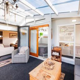 Excellent indoors to outdoors with a beautifully semi-enclosed patio from the kitchen area, and a spacious sunroom off the dining/living area. Two double bedrooms plus studio, which is currently being utilised as a third bedroom, is adjacent to the spa pool area. Quality window dressings, tiled floors, neutral carpet, provides a calming decor that all adds up to a very appealing and restful interior.