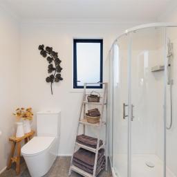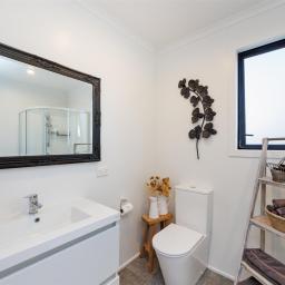 Good sized quality bathroom provides convenience for you with its tiled floor, large shower cubicle, heated towel rail, vanity and toilet. The mini hallway has a linen storage cupboard.