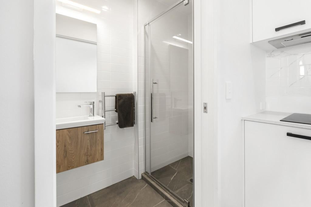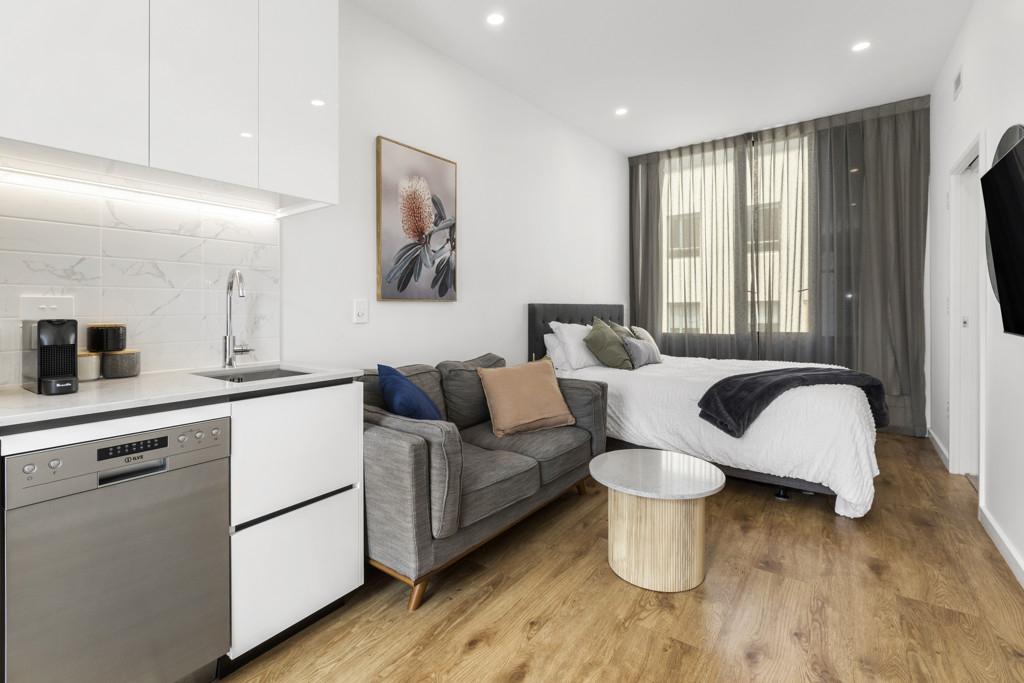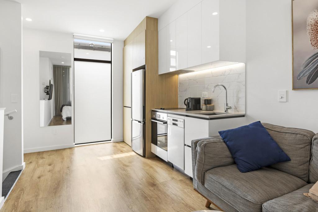 Upstairs - Immaculately presented and well received on Airbnb offering perfect city centre guest accommodation OR the option of a live in opportunity/city bolt hole in a prime location. Fitted with a large open plan living/bedroom space, quality kitchen with good bench and storage space, laundry cupboard and tiled bathroom. With large windows and a high stud the property is flooded with natural light.