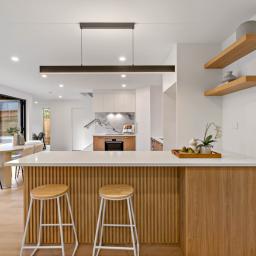 The sleek kitchen forms the hub of the home, perfect for entertaining or family meals, while internal garaging and an additional off-street park deliver daily convenience.