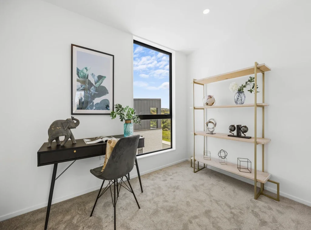 The crowning touch: a private master ensuite with balcony and an office, offering sweeping views of the reserve and even Auckland's Sky Tower. A rare combination of suburban calm and city connection.