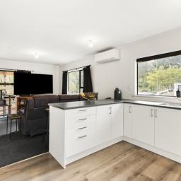 Offering open plan living flowing to a modern kitchen with plenty of storage, a laundry/mud-room, bathroom features a bath and shower, two double bedrooms all complemented with a wood-burner, heat transfer, wet-back system and heat-pump.