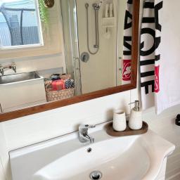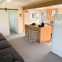 This two bedroom (56m2)cottage has open plan kitchen, living and lounge, and separate bathroom/ laundry.