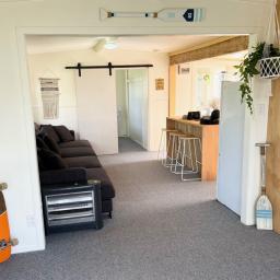 The generous deck area is ideal for relaxing and entertaining allowing access with ease to a separate cabin-room (14 sqm) perfect for extra guests or a flexi-room for office/storage.