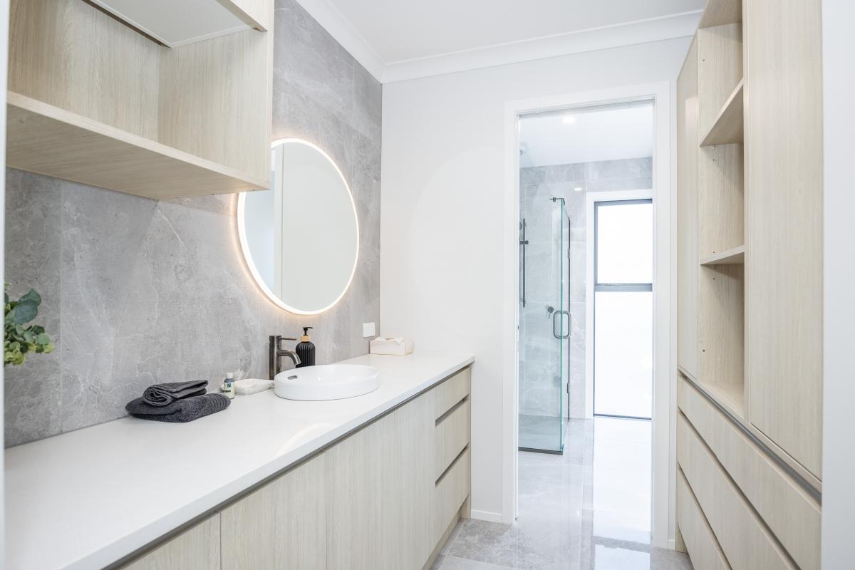 The generously sized bedrooms throughout provide comfort for all, while the master suite, tucked at the opposite end for ultimate privacy, boasts an oversized wardrobe and a luxurious en-suite with a tiled shower and a stone-top vanity. A family-friendly bathroom features a bath and a spacious tiled shower, ensuring everyone's needs are met.