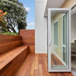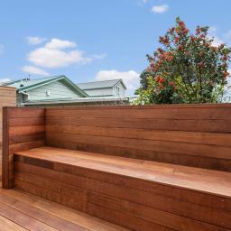 - Ground floor open plan living and dining with fabulous flow to a private sunny Kwila deck with built in seating