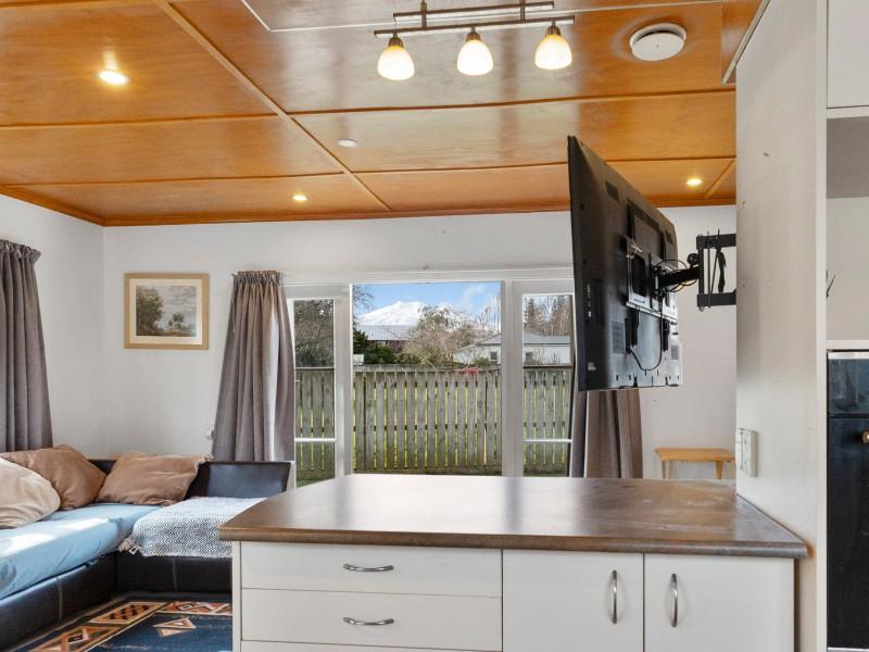 Set on a fully fenced section with a big backyard, there’s plenty of room for pets, kids, or turning over some soil. From the deck out back there is a lovely view of Mount Ruapehu.