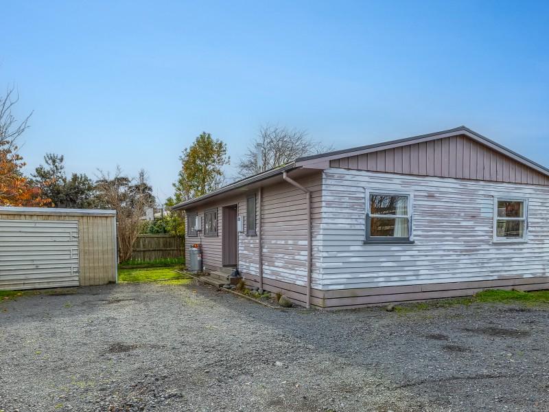 All three bedrooms have built-in wardrobes, and the layout is simple and straightforward. Outside, there’s a woodshed, garden shed, and single garage, all usable for storage or projects.
