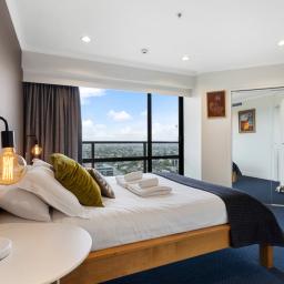 Suite 1201 is a spacious and beautifully presented one bedroom apartment with views stretching from Rangitoto all the way around to the Waitakeres.