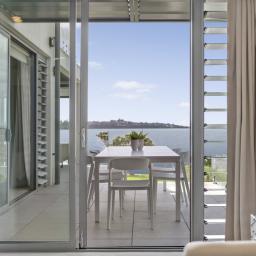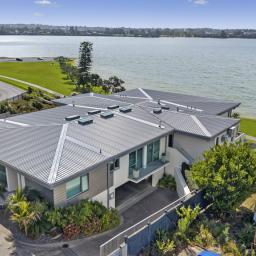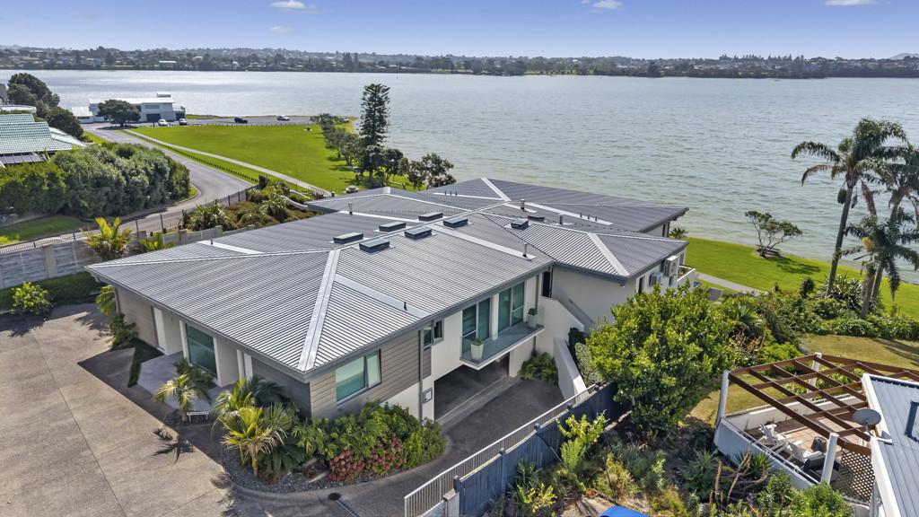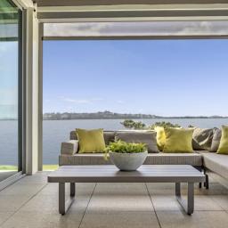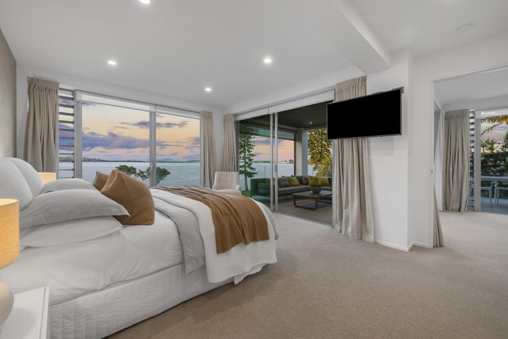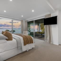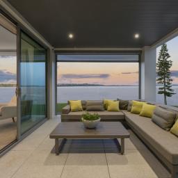 By day, watch kite surfers chase the breeze, paddle boarders drift by, and young sailors from the Pakuranga Sailing Club mastering the wind. There's always something to enjoy, whether from the expansive open terrace, the sheltered alfresco area, or the garden level that opens through a