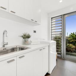 Positioned with an extraordinary vantage on the Farm Cove Peninsula, this residence feels as though it floats above the water - more akin to an elegant overwater bure or a boutique ocean liner than a traditional home. From sunrise to moonlight, the panorama unfolds across the glistening waters of the Tamaki Estuary, reaching across to the Glendowie coastline where the lights twinkle softly at night, offering a serene and ever-changing backdrop to daily life.