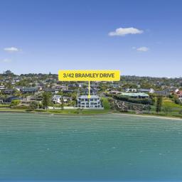 3/42 Bramley Drive- a rare opportunity to secure a prestigious coastal address where every moment is framed by the sea, the horizon, and the Rotary walkway on your doorstep, plus stunning sunsets with views across the bay to the Marina beyond.