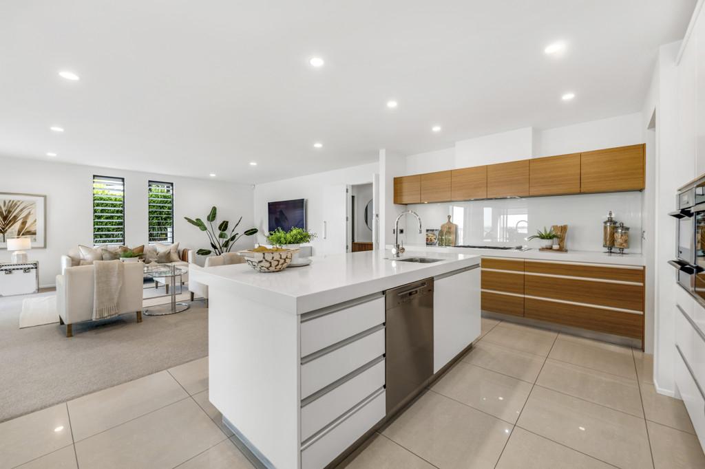 The upper level is the heart of the home, featuring an open-plan kitchen, dining, and living space that flows seamlessly to the two terraces - the perfect setting for entertaining against the backdrop of the glittering estuary and distant city lights. The master suite shares the same captivating outlook, offering a tranquil retreat at day's end.