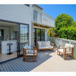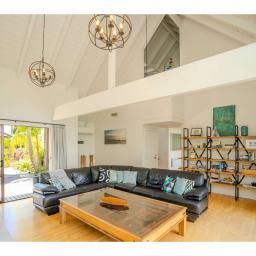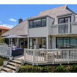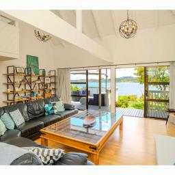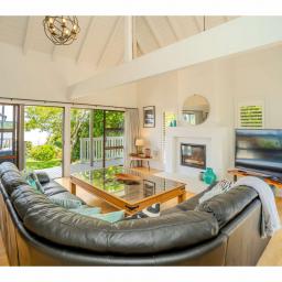 • The home features a thoughtfully laid-out floor plan with a large lounge area that opens onto expansive deck/patio on both sides—one leading across the garden and straight to the water. These outdoor spaces are perfect for relaxing, entertaining, or enjoying the view of the water just steps away.