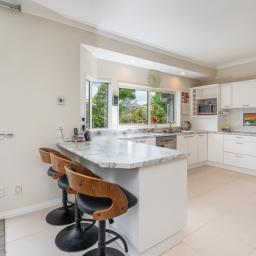 The home is sleek by social design, offering five generously sized double bedrooms, four bathrooms, including two master suites with walk-in wardrobes and en-suite bathrooms. Large open-plan living areas, a streamlined kitchen, formal and informal lounges and a separate dining room create the perfect setting for both relaxation and enjoyment.