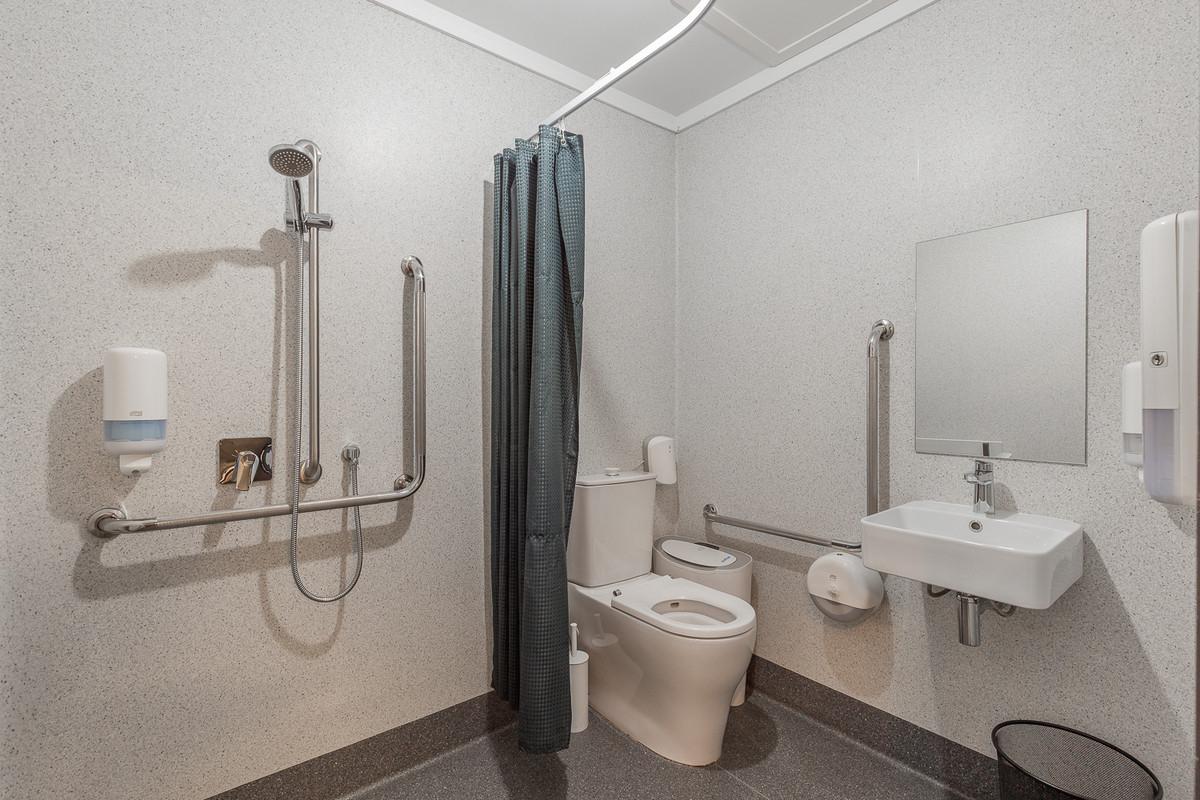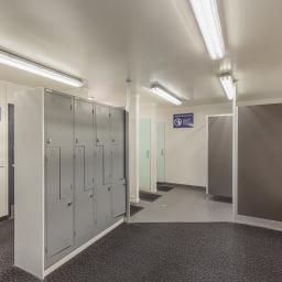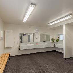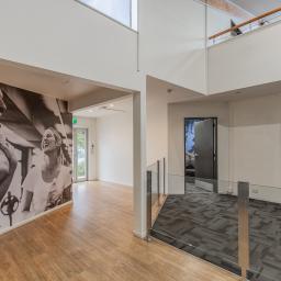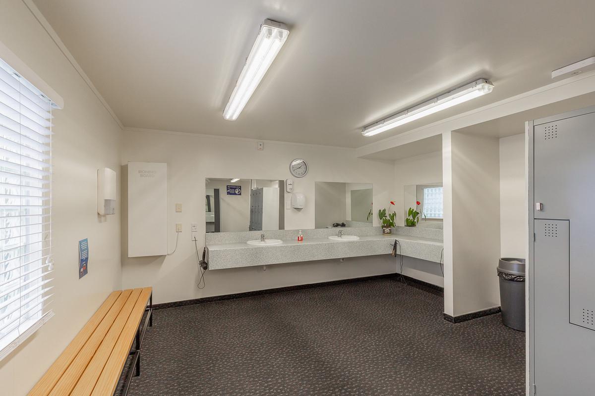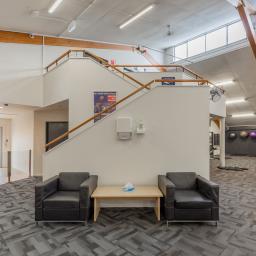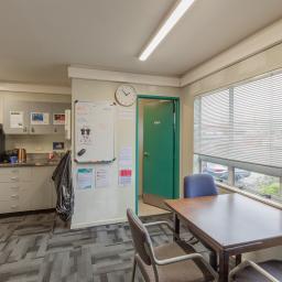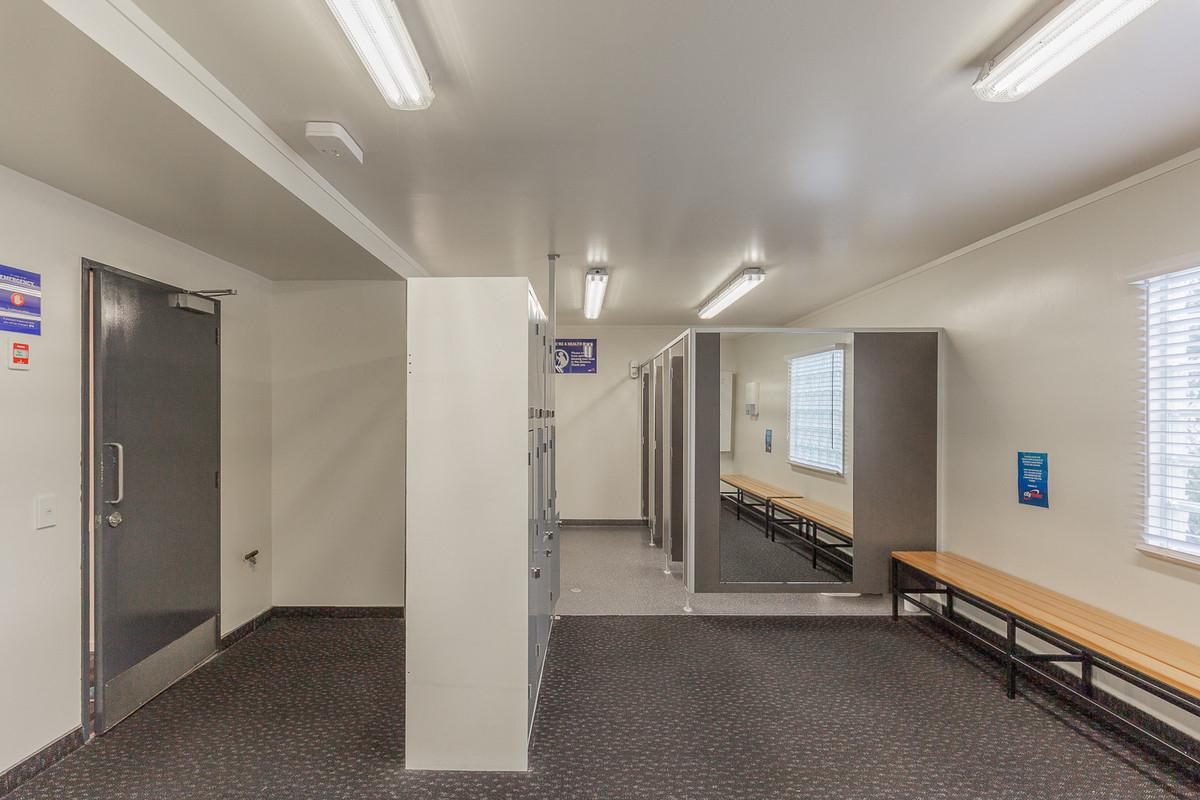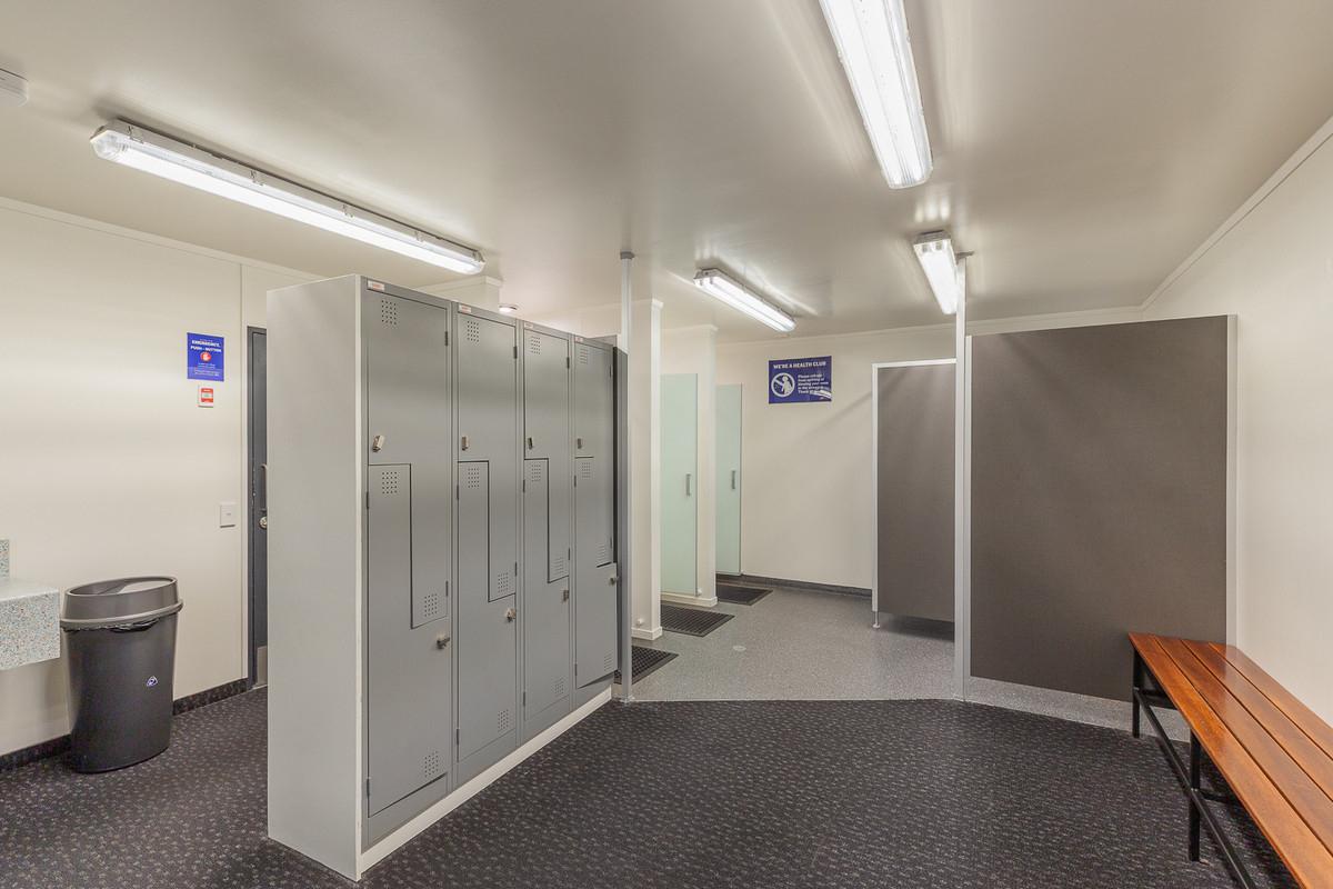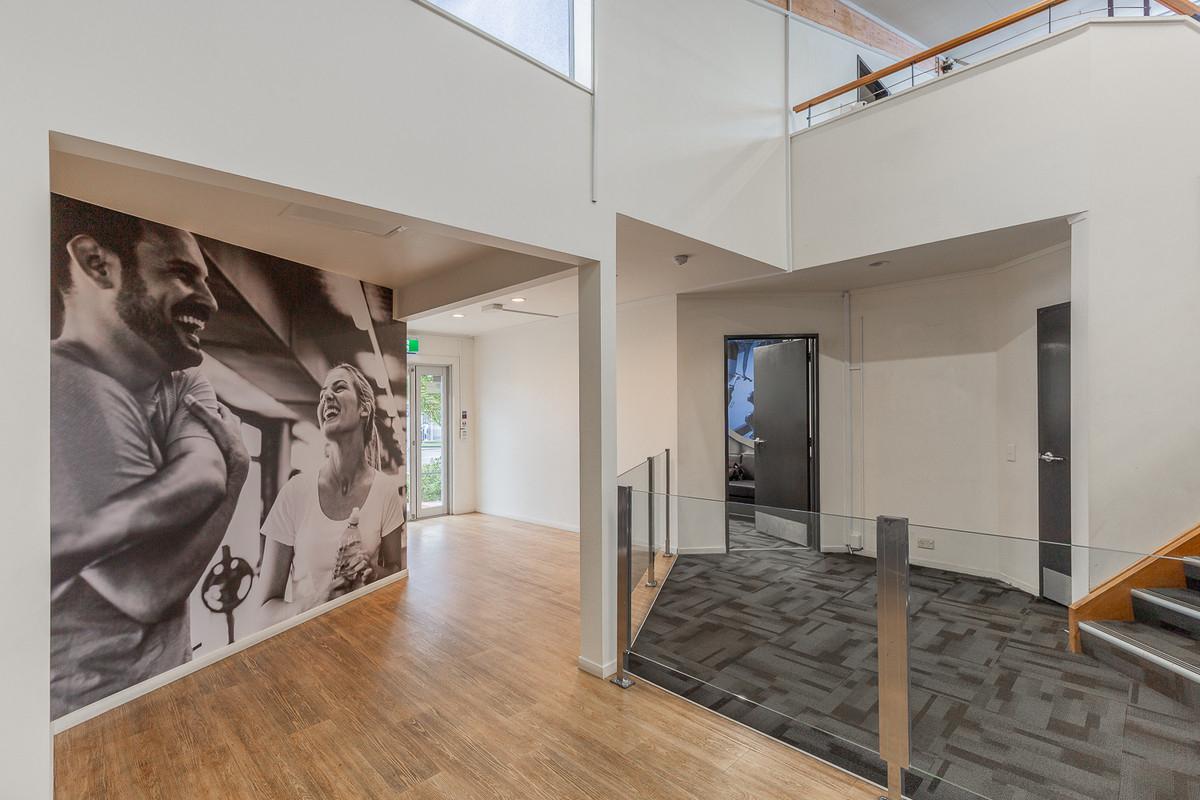Previously operating as a gym since 2004, the high-stud, open-span warehouse is currently configured with a welcoming reception, a staff room with kitchenette and dedicated bathroom facilities, offices, male and female changing rooms, and an accessibility bathroom.