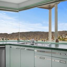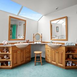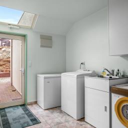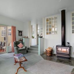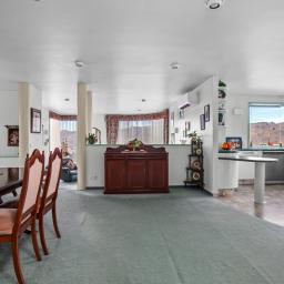 The generous kitchen is ideally positioned to take in the view, with plenty of storage throughout. The open-plan dining flows to two separate living zones — a formal lounge for entertaining and a relaxed family living space with a freestanding Yunca fire for cosy evenings.
