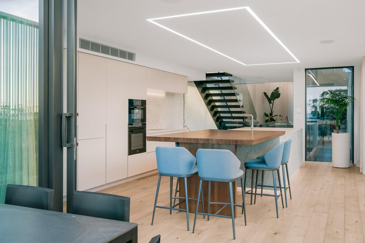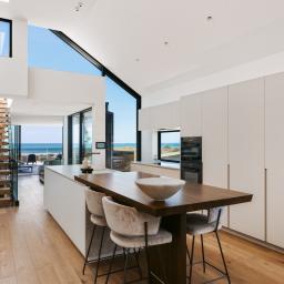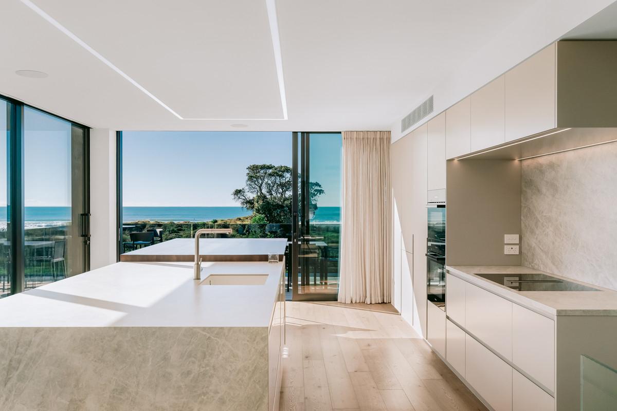 - Bridging Elegance: Ingenious bridges in both homes connect kitchen and living areas while maintaining ocean outlooks and sightlines.