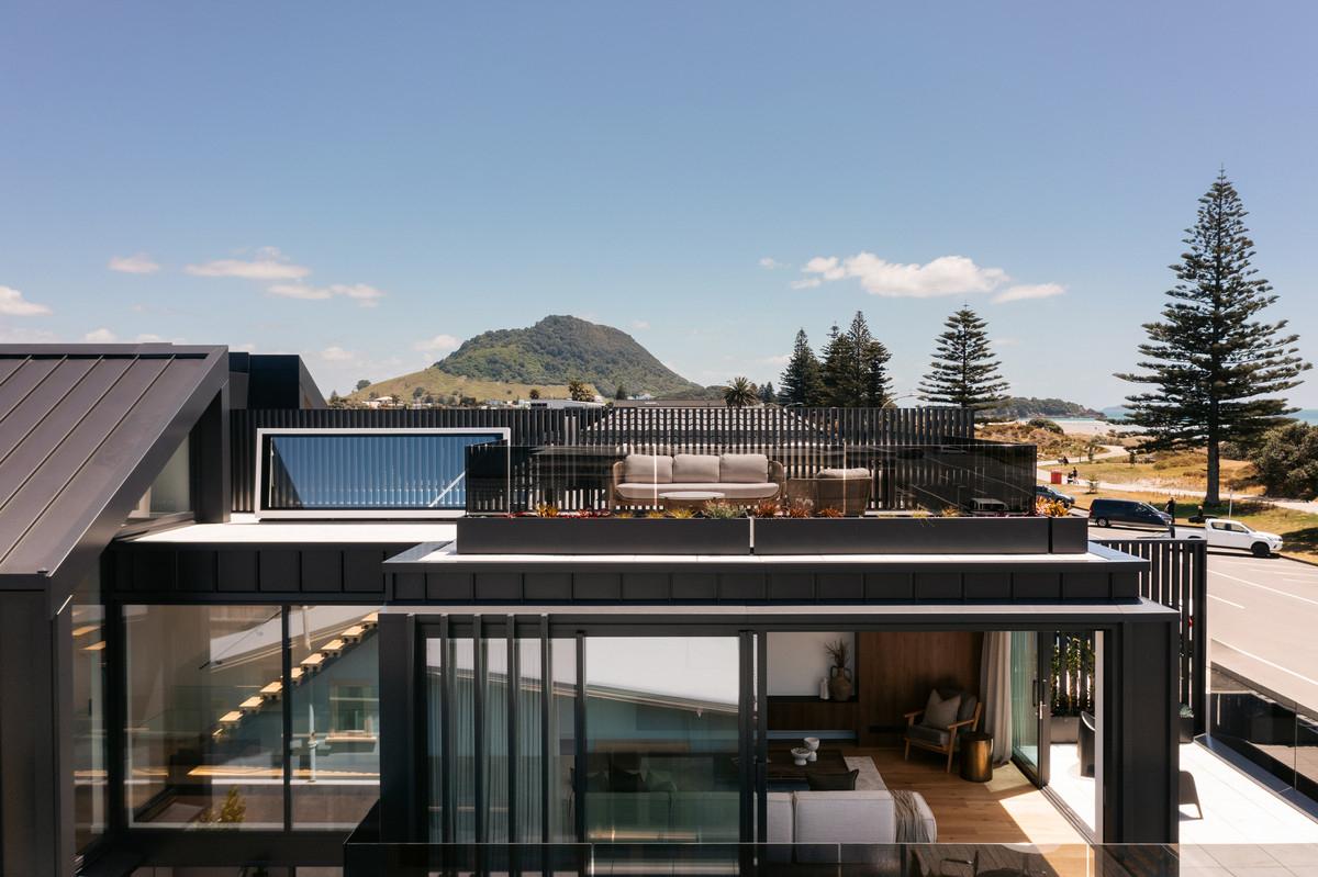 - Rooftop Terraces: Both homes boast rooftop retreats accessed via state-of-the-art electronic roof hatches, offering 360-degree views of Mauao, the ocean, and harbour activity - perfect for sunrises, sunsets and entertaining under the stars.
