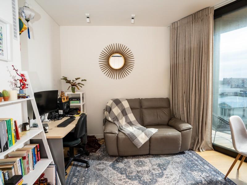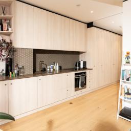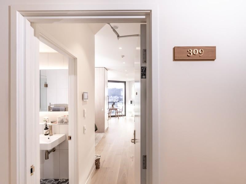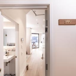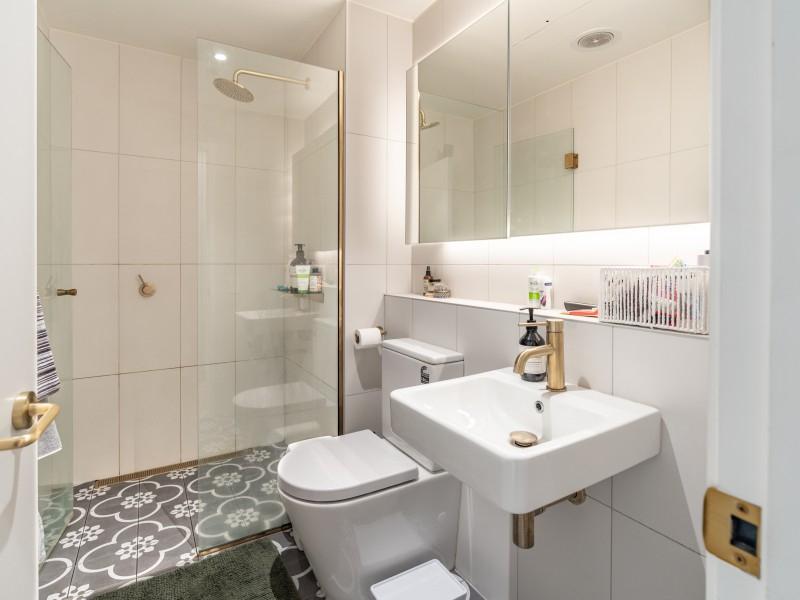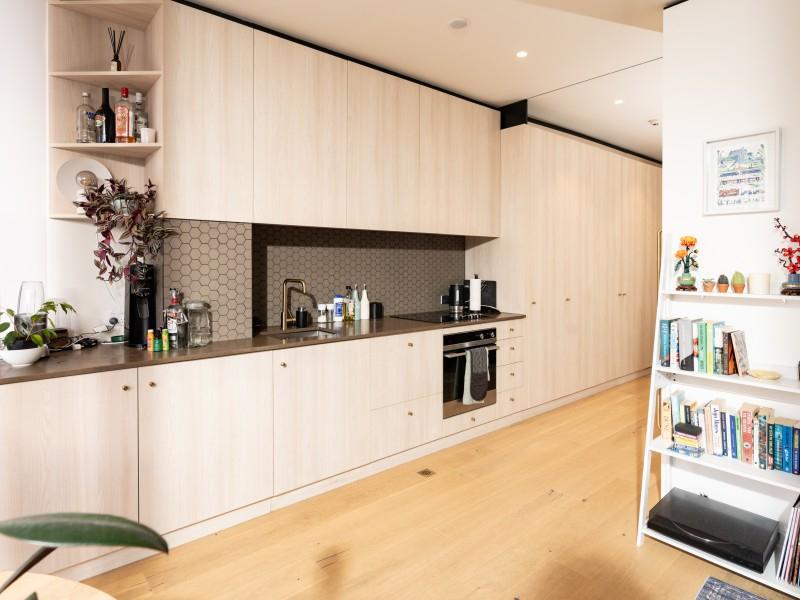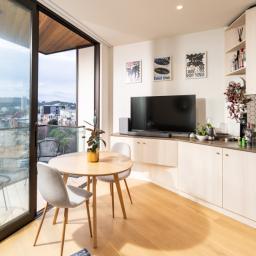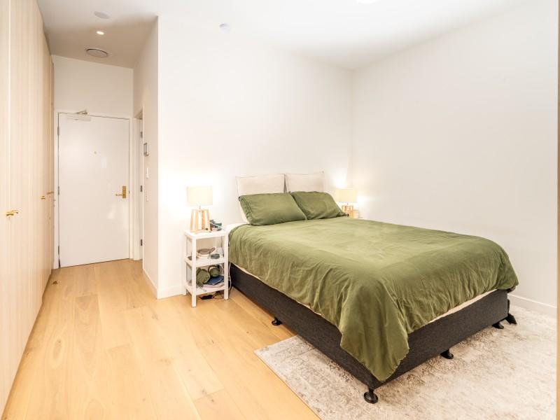 Located on the third floor with panoramic city views, this sleek, east-facing apartment captures glorious morning sun and ambient natural light through floor-to-ceiling double glazing. A high stud, French oak engineered flooring, and a warm minimalist palette set the tone for sophisticated urban living.