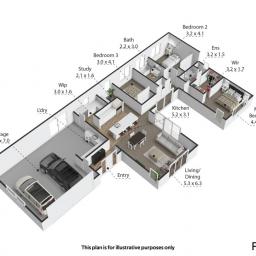 Three double bedrooms include master suite with walk-in wardrobe and ensuite. A built-in office nook covers work or study without stealing a bedroom.