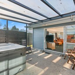 This home offers spacious open-plan living with excellent indoor/outdoor flow and an abundance of natural light. Sliding doors in the dining area open to a north-facing, sunny patio, ideal for relaxing and entertaining guests. A second set of sliding doors from the lounge leads out to a private, west-facing spa pool, perfect for unwinding at the end of the day. You'll find three generously sized bedrooms, all with ample storage. The master bedroom is a true retreat, complete with an ensuite bathroom, and the family bathroom features both a bath and a separate shower.