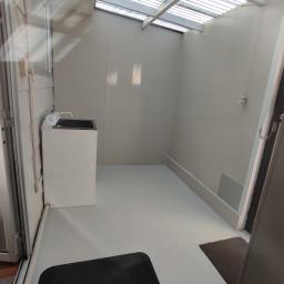 Large open plan living, dining and modern kitchen with dishwasher and pantry.