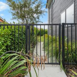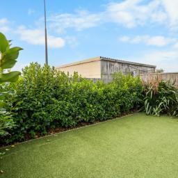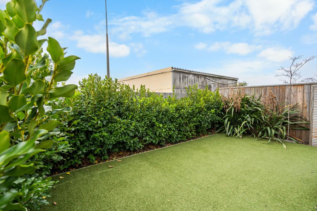 The ground floor features an open plan dining and living area which leads through north-facing sliding doors to a fully fenced private sheltered courtyard, including clothesline and garden shed.
