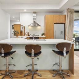 • Open plan modern kitchen, featuring gas cooking, stone bench-tops and ample storage