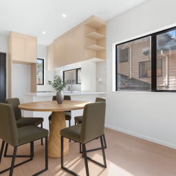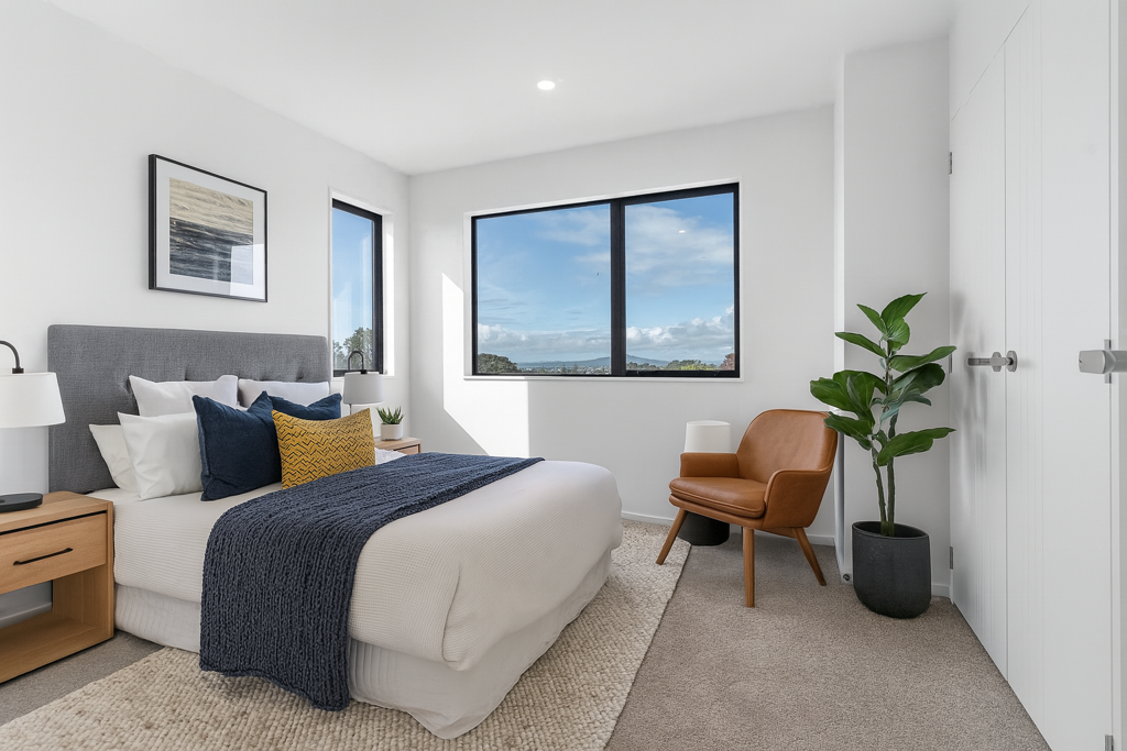 This beautifully presented near-new, architecturally designed townhouse offers modern comfort, thoughtful design, and an elevated position capturing stunning views toward Rangitoto and the harbour. Positioned as a corner residence, the home benefits from additional windows, excellent natural light, and a wonderful sense of privacy.