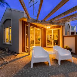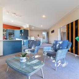 This light-filled home, with its mixed cladding, is designed for effortless living. The spacious open-plan kitchen, dining, and living area enjoys all-day sun, creating a warm and inviting atmosphere. The contemporary kitchen offers abundant bench space, while a separate sitting room opens to a private courtyard, the perfect spot to relax or entertain in style.