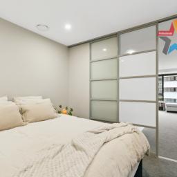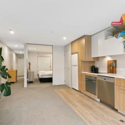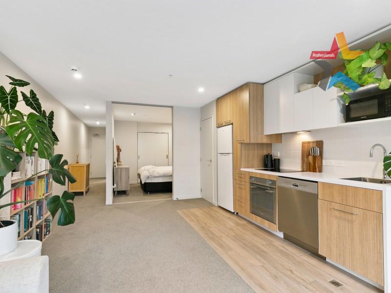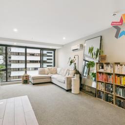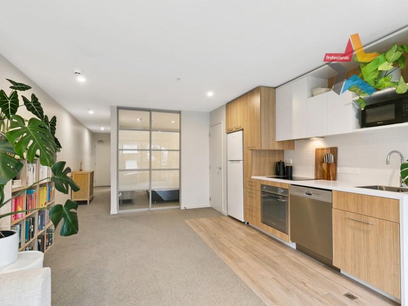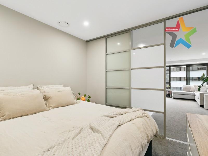 Positioned on the quiet west side of the building and away from the traffic noise. The open-plan living area is a sun-drenched haven with city and Kelburn views with large opening sliding windows.