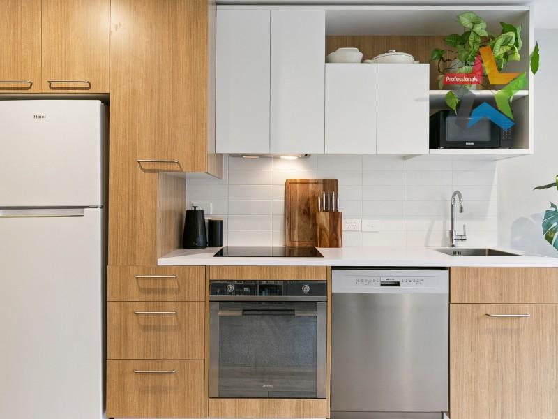 •Modern kitchen with excellent storage and clean, sleek finishes