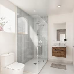 The first-floor features generously sized double bedrooms. All bedrooms include built-in wardrobes. The bathrooms have tiled showers with a glass and floating vanity.