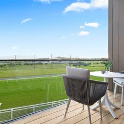 From the moment you arrive, the home's elevated placement and refined contemporary design set the tone for an exceptional lifestyle. Every room - from the open-plan living space to each of the three bedrooms - has been thoughtfully oriented to embrace uninterrupted views across the sweeping green expanse of the track.