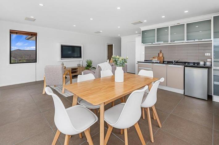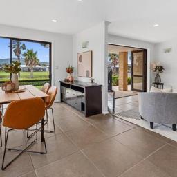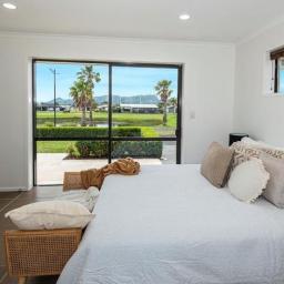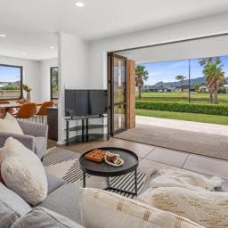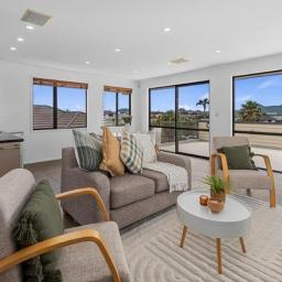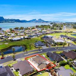 This two-level home offers the perfect setting for an extended family, with a fresh new look throughout in keeping with modern colours and décor. Each level has its own garage, laundry and a heat pump. The lower level has a generous open plan kitchen / dining and living area which leads outside to a North facing patio, The main bedroom also leads outside to the front patio and has its own ensuite and generous wardrobe. Plenty of room for the family in the other two downstairs bedrooms which share a large bathroom. The top level has a lovely peaceful outlook from the open plan living area which has a kitchenette for a quick cuppa to take outside to the balcony which takes in breath taking views over La Pointe Beach Estate golf course and beyond to Mt Manaia and the surrounding mountains. Upstairs also has 2 double bedrooms for guests and a stylish large bathroom. Each level has its own power meter and hot water system. This property is easily set up to separate the two levels with each having all the main comforts needed and great views. The property also has 3 phase power and an outdoor shower. There is plenty on offer than just relaxing, with a 9-hole golf course, tennis courts and a children’s playground. Enjoy easy access to the harbour for boating, fishing. ASKING PRICE $1,200,000 PRESENT ALL OFFERS