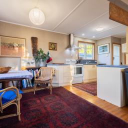 Beautifully styled with vibrant colours and eclectic artwork, this home is perfect for first-home buyers stepping into the market, professionals needing a peaceful yet accessible retreat, or those looking to slow the pace and enjoy the simple things. From the moment you walk in, polished tawa floors and sunlit open plan kitchen, dining and living give a sense of comfort and ease.