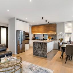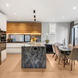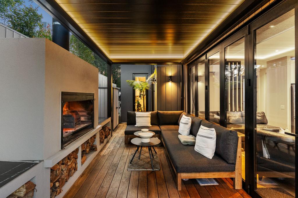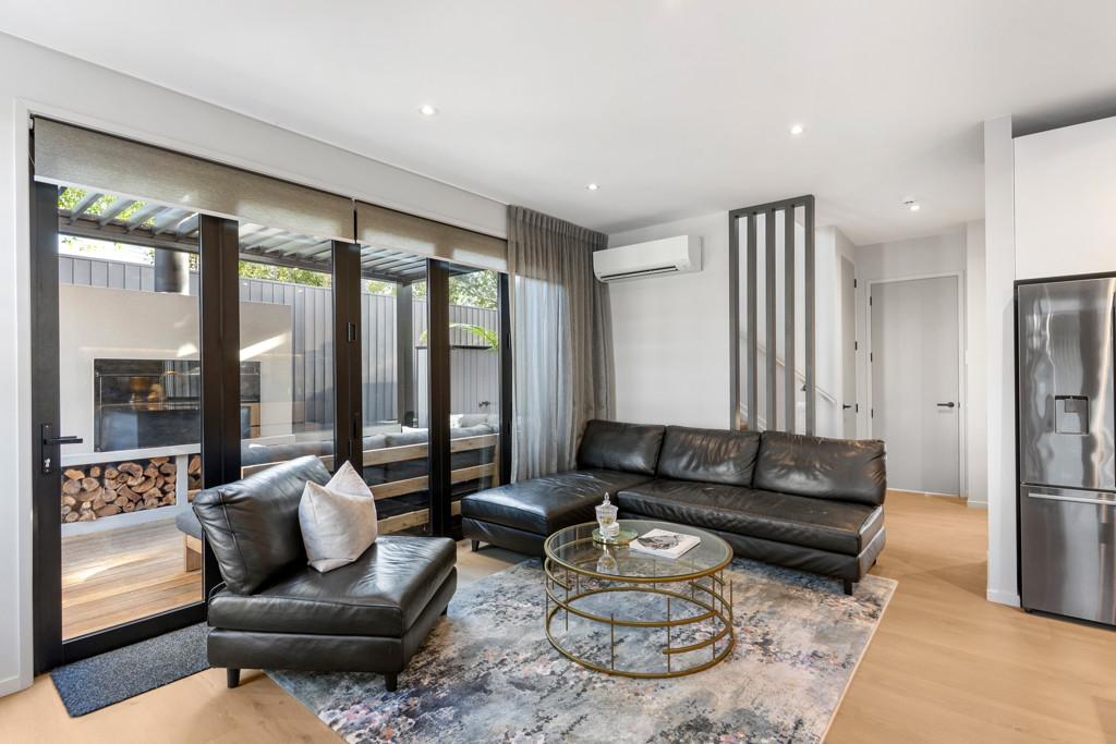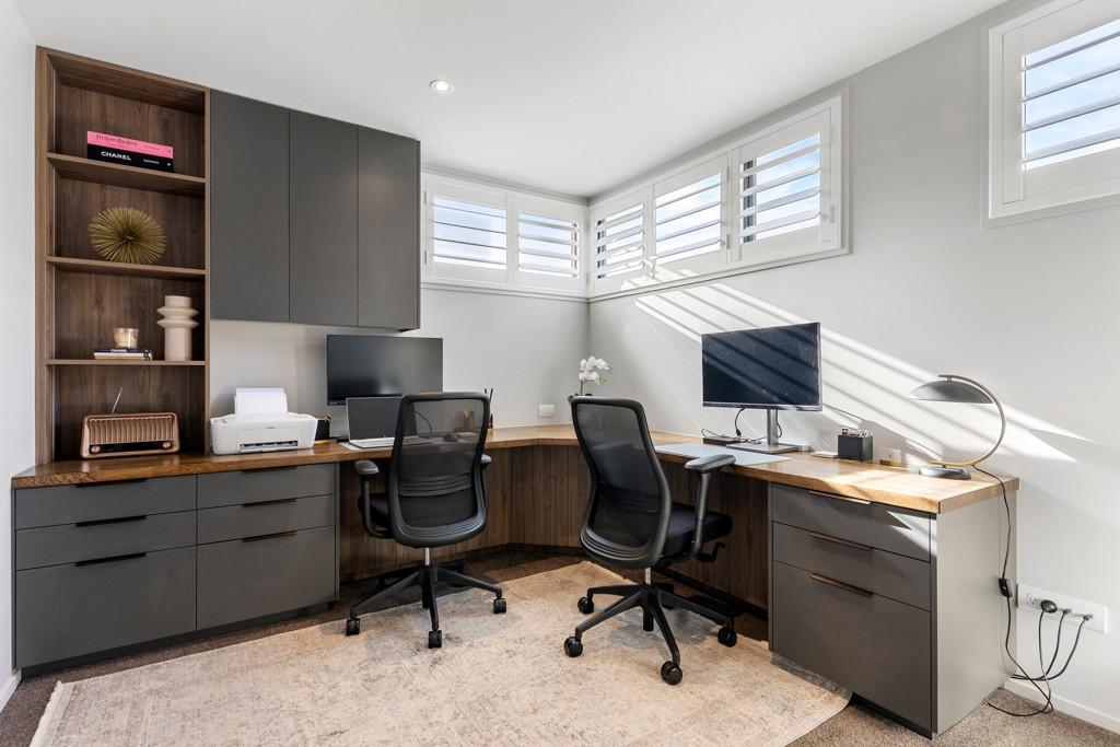 The 153 sqm (approx.) layout maximises its secluded orientation with alfresco zones accessed via banks of bifolds. A state-of-the-art remote-controlled Louvretech roof with weather sensors protects an intimate chillout haven with built-in fireplace, lumber storage bays, and barbecue perfect for all seasons entertaining. Open plan living and dining areas are anchored by Timber flooring while plantation shutters, dreamy drapes and LED lighting instil a sophisticated ambiance. Italian marble makes a dazzling statement in a Bosch-equipped designer kitchen with matching scullery integrating ample cabinetry and shelving. A conveniently located powder room is tucked under the stairs, while the upstairs bathrooms feature sleek porcelain tiles, offering both style and practicality. The sumptuous ensuite now includes freestanding bath, along with shower, dual vessel basins and LED mirrors. The master bedroom dressing room boasts custom makeup station and deftly curated wardrobe capacity. Carpeted bedrooms have one currently as an office but easily reverted if desired. Internal access double garaging is carpeted while the double-glazed home has three heat pumps and underfloor heated bathrooms for year-round comfort.