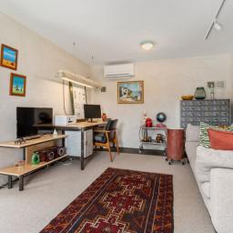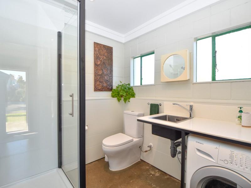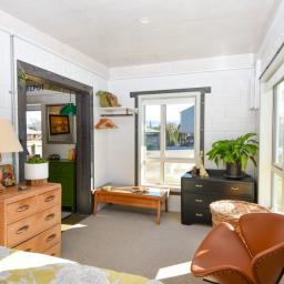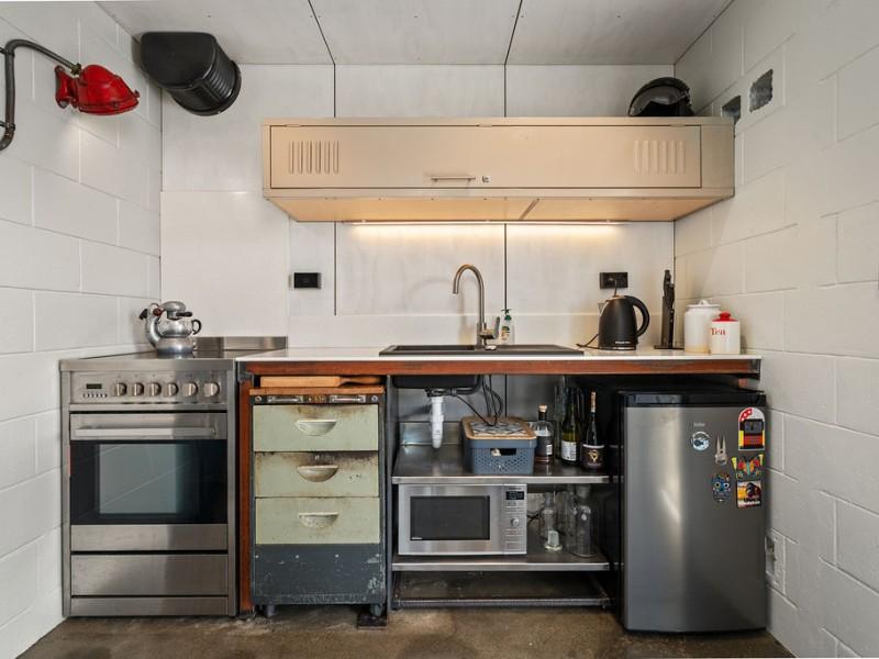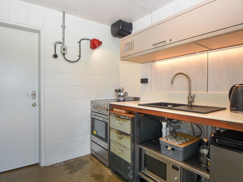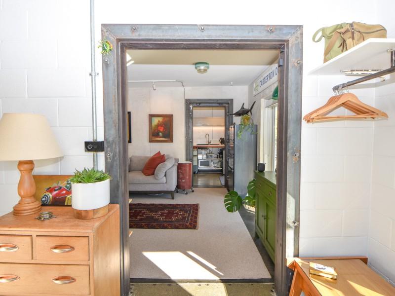The layout is welcoming and practical. Enjoy a sunny aspect, double-glazed windows, a heat pump for year-round comfort and an impressively spacious bathroom with integrated laundry. The kitchen is both functional and full of personality. Fully rewired with three-phase power and excellent insulation, it's ready for business. One of the standout features is the repurposed loading dock - now a sun-drenched deck with views to the Tararuas, perfect for breaks or informal meetings.