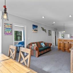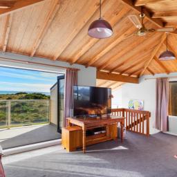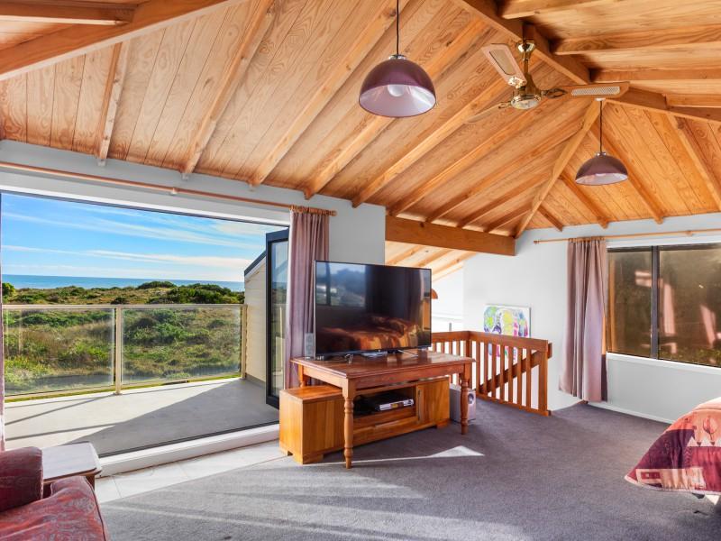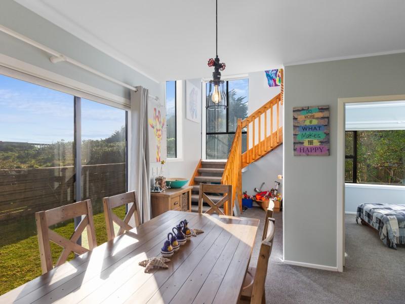 Set on a generous 961m2 beachfront section, there's loads of room for family fun: pitch a tent, fire up the BBQ, or relax on the sun-soaked deck or in the sheltered conservatory. A double garage keeps all the beach toys, bikes, and boards neatly stored.