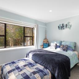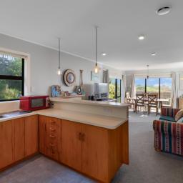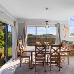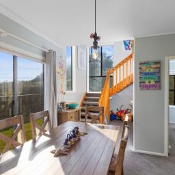 Inside, there's a light-filled open plan kitchen, dining, and living area . Three bedrooms, an updated bathroom, two toilets, and fresh carpet keep things comfortable, while the logburner, heat pump, and HRV system ensure year round comfort. Upstairs, a spacious rumpus room adds extra space for guests, games, or a second lounge and makes the most of those magic views.