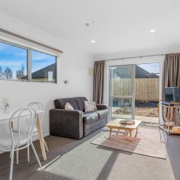 The section features a modern, fully consented 1‑bedroom sleepout – ideal for guests, a home office, or hobby space. Complete with a living area, double bedroom, bathroom, and single garage, it’s a flexible stand-alone addition.