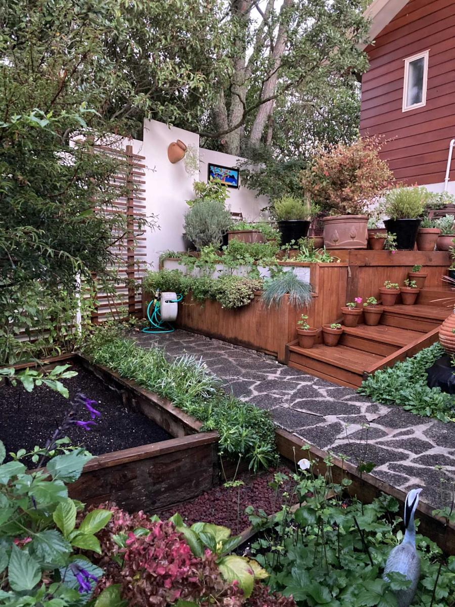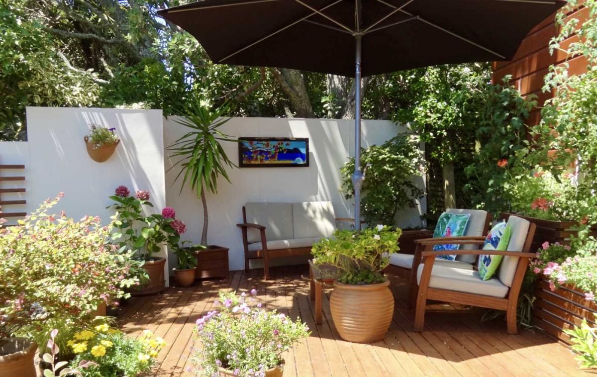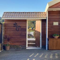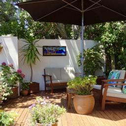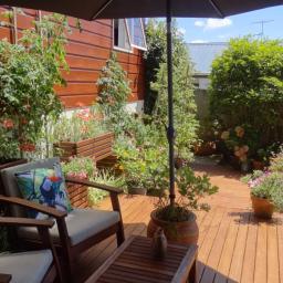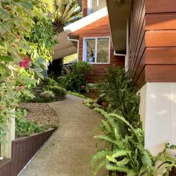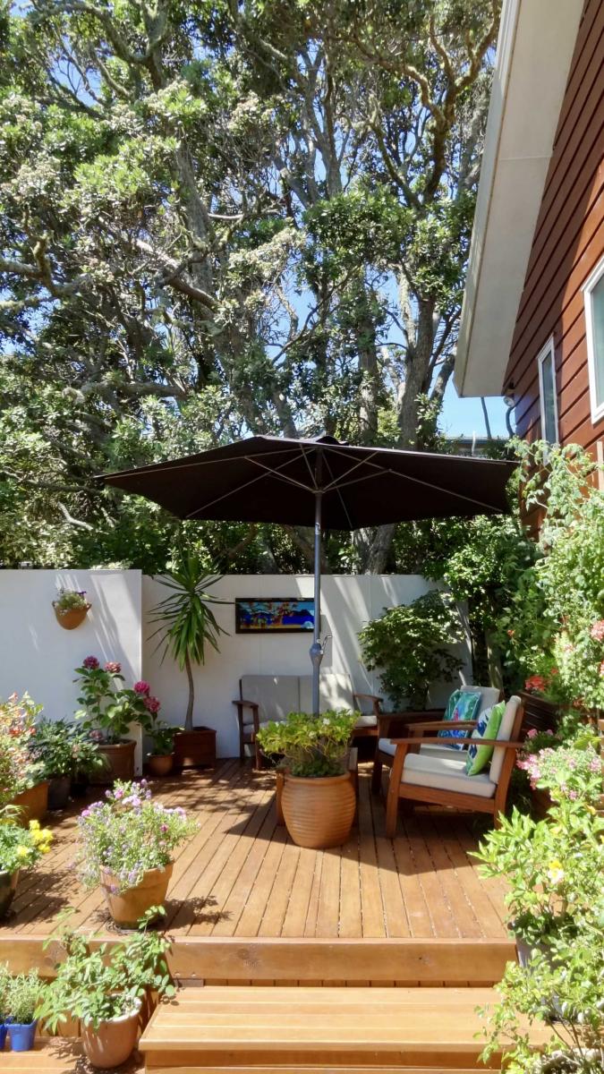 You’ll enjoy the private, fully fenced back garden, safe for children and pets. This tropical oasis, framed by mature flowering trees and banana palms, is a great place to soak up the sun, or dine in the shade of the giant pohutukawa, enjoying the many visiting tui, kereru, rosellas and fantails. Two large decks step down to lower gardens with perfumed climbing roses, a water feature, and space for a swing seat. Here you’ll also find a raised veggie garden, ready to plant out to nourish your family with fresh homegrown produce.