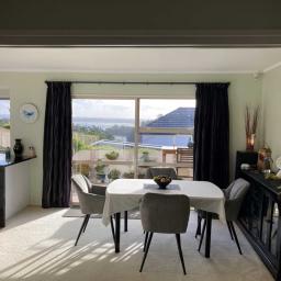 Secure, quality, split level 200m2 cedar home with aluminium joinery and a concrete tile roof. Nestled on a tree-framed, sun-drenched and fully fenced section up a long driveway, out of sight, with off-street parking. Gorgeous views over the inner harbour, Kauri Point, Muriel Fisher Reserve and Kauri Park native bush and absolutely stunning sunsets for you to savour!